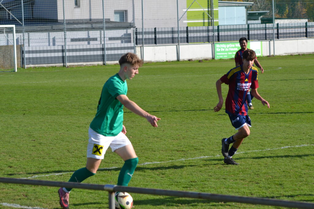 Auch in weiterer Folge konnte unsere Elf offensive Akzente setzen und wurde in Minute 23 für seine Offensivbemühungen belohnt: Jakub Mikula tankte sich über die rechte Seite gegen mehrere Gegenspieler durch und setzte mittels Stanglpass Marek Netolicky in Szene, der aus fünf Metern zwar noch von einem Abwehrspieler gestört wurde, den Ball jedoch im Gehäuse der Gäste unterbringen konnte. Durch diesen Führungstreffer beflügelt, versuchte der SVN den Vorsprung auszubauen, konnte seine Aktionen aber nicht geradlinig genug zu Ende spielen. Auf der anderen Seite fanden die Gäste in der ersten Spielhälfte eine gute Tormöglichkeit nach einem Eckball vor. Der Abschluss per Kopf verfehlte jedoch unser Tor knapp.