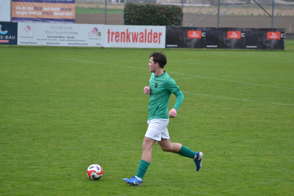 Und so gestaltete sich auch die Anfangsphase im Duell SVP vs. SVN. Petzenkirchen fehlte etwas der Spielfluß und je länger gespielt wurde umso mehr fanden die Grün-Weißen aus Neumarkt in die Partie und verlagerten das Spielgeschehen in des Gegners Hälfte. Immer wieder schlichen sich bei den Gastgebern dadurch Ungenauigkeiten ein und eine ebensolche verhalf dann kurz vor Pausenpfiff dem SVN zur Führung. Jakub Mikula stibitzte sich das runde Leder nahe der Mittellinie und spielte seine Schnelligkeit aus, zog aufs Tor und versenkte den Ball mit einem Flachschuss ins linke Eck – eiskalt! 1:0 für unseren Sportverein, der das Spiel in dieser Phase kontrollierte und mit der ersten großen Gelegenheit auch gleich zuschlug.